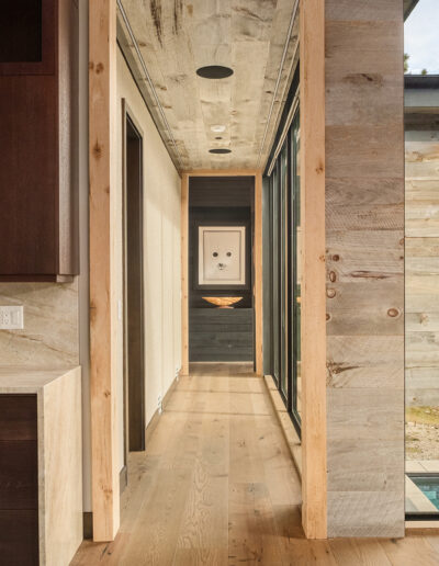 The custom stain and matte finish were carefully developed to balance the home’s palette: soft, earthy tones that complement the natural light while enhancing the wood’s raw texture without added sheen.