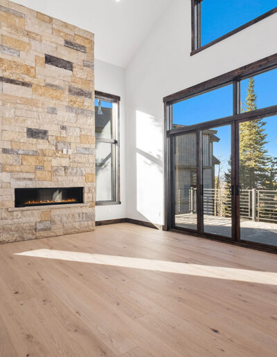 This stunning new duplex in Breckenridge, Colorado, perfectly captures the essence of refined mountain living, where contemporary design meets rugged, natural materials and beauty. Bathed in glorious natural light from immense, floor-to-ceiling windows, the space is anchored by the timeless elegance of the color Avoria from our Classic Collection. The light, neutral European White Oak planks of Avoria reflect the natural light and sky, creating an airy, contemporary backdrop that allows the dramatic stone fireplace and breathtaking alpine views to take center stage. The extra-wide, long planks, featuring a Country Grade with its high variation, introduce a rich, authentic texture that beautifully complements the rugged surrounding landscape and adds unique character to the interior design. Engineered with exceptional stability and a durable, Easy Care Matte Finish, Avoria offers not just aesthetic appeal, but unparalleled performance. Certified for sustainability and approved for in-floor radiant heat, this hardwood flooring floor ensures the home remains stunning, durable, and comfortable in the demanding high-altitude environment of a luxury mountain retreat. For a completely cohesive design, VANTIA provides a full solution: we stock all colors of the Classic Collection in a beautiful square-profile stair nose and can also fabricate custom stair parts, including block treads, one or two-side open treads, waterfall nosing, and other components tailored precisely to your project's specifications, delivering wood flooring that meets the highest standard from floor to stair.